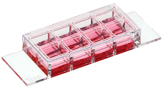 Fogyóeszközök > Sejttenyésztő eszközök > Sejttenyésztő edények > mikroszkópos mintatartók > Chambered coverslip > Magas falú ibidi kamrák