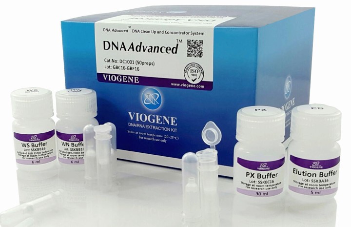 A Viogene DNA Advanced DNA Clean Up and Concentrator Miniprep System szilikagél-membránon köti meg a DNS-t, magas sótartalmú pufferben (pH 4,5-5,5) amiről a DNS elúció alacsony sótartalmú pufferrel (pH 7,0-9,0) vagy ddH2O -zel történik.