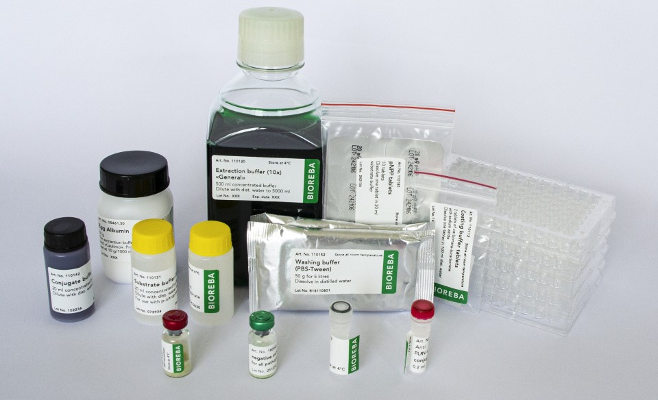 Bioreba Reagents Sets Kits: A Bioreba növényvírus diagnosztikumok megvásárolhatók komplett kitekben, reagens készletekben, és egyes kit komponensek önmagukban is.