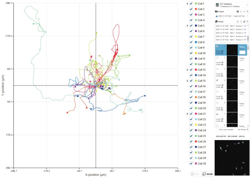 A kísérlet során felvett felvételsorozat sokrétűen felhasználható; a HoloMonitor AppSuite live cell assay szoftver csomag más moduljaival újra elemezhetők. Ily módon ugyanabból a sejttenyésztésből és kísérletből többféle biológiailag releváns adat nyerhető ki. Például egyazon felvétel sorozatból egyszerre tanulmányozható a sejtosztódás, morfológia és motilitás. A rendszer lehetőséget nyújt egyedi sejtek nyomon követésére is, a Holomonitor térhatású idősoros felvételei, mérési adatai valós időben követhetők akár sejt szinten.